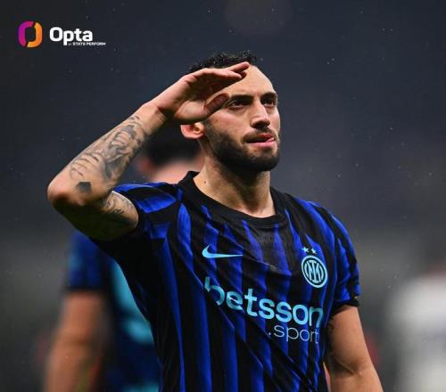 至此,恰尔汗奥卢本赛季意甲7次出场已打入5球,与他上赛季的联赛进球数持平。