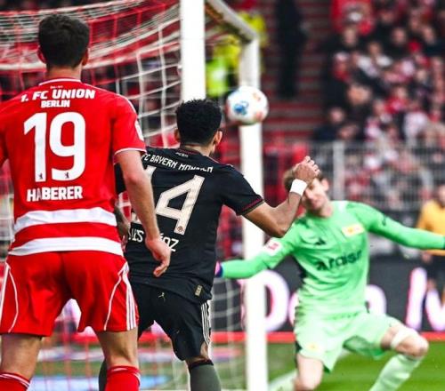 德甲联赛第10轮,拜仁和柏林联盟的比赛最终打成2-2平,德甲豪门无缘继续连胜,16连胜的纪录被终结,新赛季的德甲9连胜也无缘打破瓜迪奥拉保持的德甲10连胜纪录。当然,拜仁如今依然保持不败,是联赛唯一不败的球队,领跑德甲积分榜。而这场比赛当中,除了凯恩最后时刻的头球绝杀之外,拜仁边锋迪亚斯在上半场打进的0角度进球也非常精彩,甚至可以参与到普斯卡什的竞争当中。