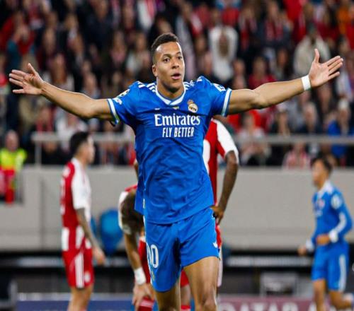 下半场易边再战。第52分钟,皇马丢球了。塔雷米抢点头球顶进。5分钟后,维尼修斯突入禁区后的射门被挡出。第59分钟,维尼修斯在边路突破,随即送出倒三角回传球,姆巴佩直接推射破门,完成大四喜!第81分钟,奥林匹亚科斯再次缩小差距。卡埃比头球顶进!之后卡埃比的射门踢偏,错失了绝平的机会。最终,皇马4-3险胜奥林匹亚科斯。姆巴佩5场欧冠打进9球,刷新个人单赛季欧冠进球纪录。