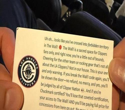 快船主场警告湖人球迷不许坐快船死忠区域,违者将被无退款驱逐 -